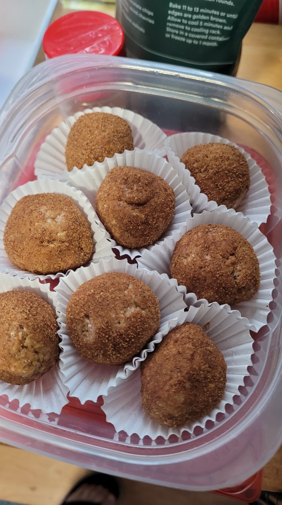 5. Remove dough from fridge. Make 1 inch balls. As you roll them individually in the cinnamon sugar mix speak allowed your wishes and intentions. Maybe you repeat the same one several times or you have one for each ball.